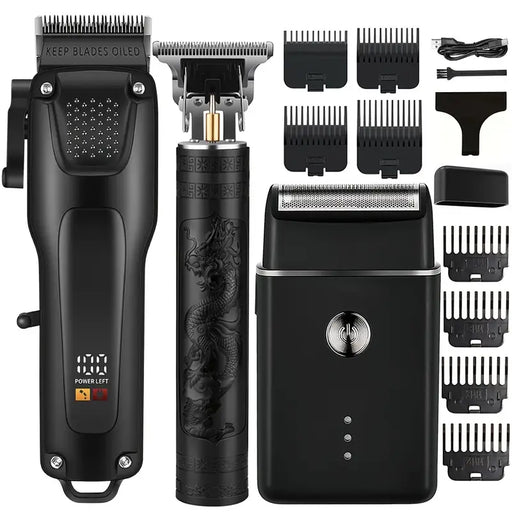 3pcs Professional Cordless Hair & Beard Grooming Kit - LED Display, Precision Trimmer Set, USB Rechargeable
