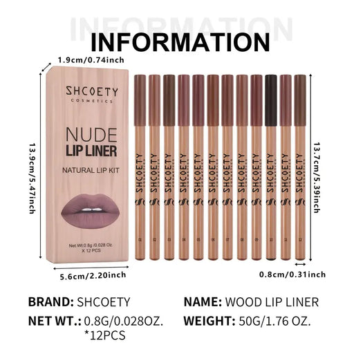 12pcs Original Color Wooden Matte Lip Liner Set, Lip Outline Wooden Lip Liner Lipstick Pen Set