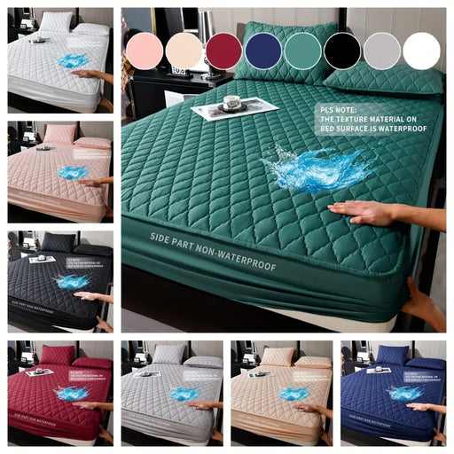 1pc Ultra-Soft Thickened Mattress Protector with Water-Resistant Function, Solid Color Plaid Pattern, Breathable Polyester Material