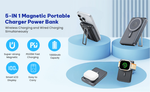 EXJ 10000mAh Magnetic Wireless Power Bank, 22.5W Fast Charging Portable Charger with USB-C & Type-C Ports, LED Display, Compact Design for iPhone 16/15/14/13/12 Series